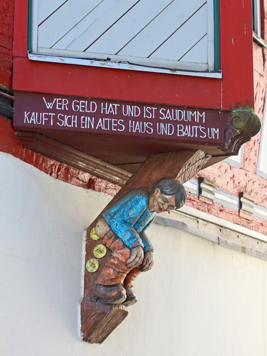 An manchem Fachwerkhaus wurde auch auf die schmückenden Details eingegangen, wie es bei den kuriosen Schnitzfiguren vom „Dukadenschisser“ im Talerwinkel und vom „Aufhocker“ am Eckhaus Breiter Winkel/Hauptstraße der Fall war.