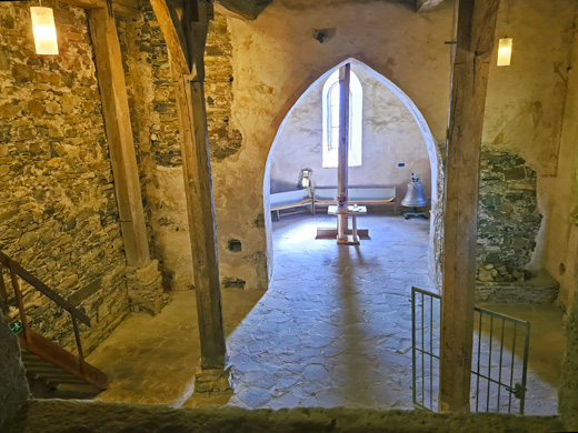 Ein gemeinsamer Blick beider Gruppen in das mit Folterwerkzeugen versehene sogenannte Tiefe Gefängnis beendete den interessanten Besuch der historischen Burganlage. Abschließend folgte im Vorhof der Burg noch das traditionelle Exkursionsgruppenfoto.