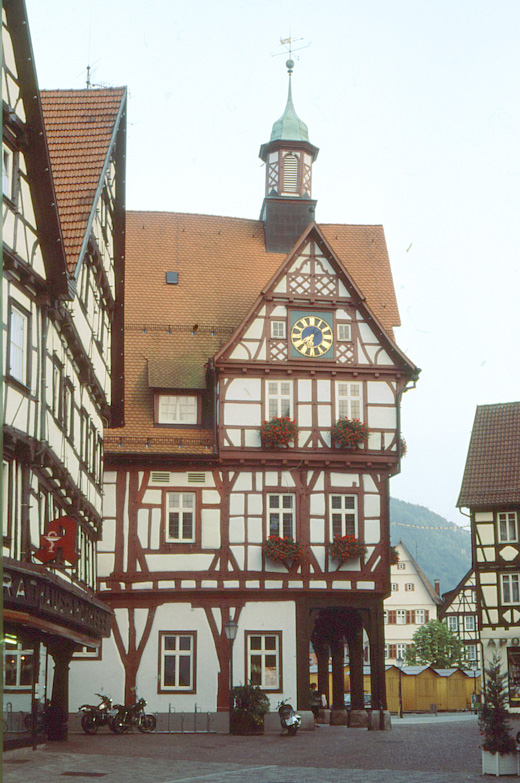 Nach der Mittagspause waren alle Exkursionsteilnehmer Gast der Württembergischen Landesbibliothek. Hauptziel des Besuches war die Abteilung "Karten und Graphische Sammlungen" mit ihrem Schatz an historischen Karten. Zu Beginn gab der Leiter der Abteilung, Rudolf Henning, eine Einführung in Aufbau, Zusammensetzung und Nutzungsweise der genannten Einrichtung. Im Anschluß daran konnten die Besucher mehrere Kleinode der Kartensammlung bewundern. Mit einem Rundgang speziell in den Magazinräumen des Hauptgebäudes der Bibliothek unter Führung van Wolfgang Crom, dem Fachreferenten für Geographie und Karten, endete der Besuch. Unmittelbar danach setzten die Exkursionsteilnehmer ihre Fahrt fort bis nach Bad Urach, wo sie den Exkursionstag abschlossen.
