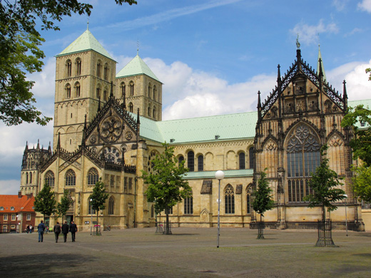 Zu Reisebeginn erhielten die Teilnehmer einen umfangreichen Exkursionsführer, der vorrangig physisch-geographische und thematische Karten sowie Blockdiagramme und Stadtpläne enthielt. Die Strecke führte zunächst entlang der Wetterau, über die Sauerlandlinie sowie dem Ruhrgebiet nach Münster in Westfalen. Im Bus gab es zwischenzeitlich Erläuterungen zur Entstehung sowie zum geologischen wie geomorphologischen Aufbau des Rheinischen Schiefergebirges, insbesondere des Westerwaldes und Sauerlandes. Nach Durchquerung des Ruhrgebiets wurde das in der Westfälischen Bucht gelegene Münster erreicht. Hier wurde eine längere Mittagspause eingelegt, um vorrangig die kunsthistorischen Kleinode der ehemaligen Hansestadt zu besichtigen, zu denen allemal der Dom und das Rathaus mit dem Friedenssaal zu zählen sind.
