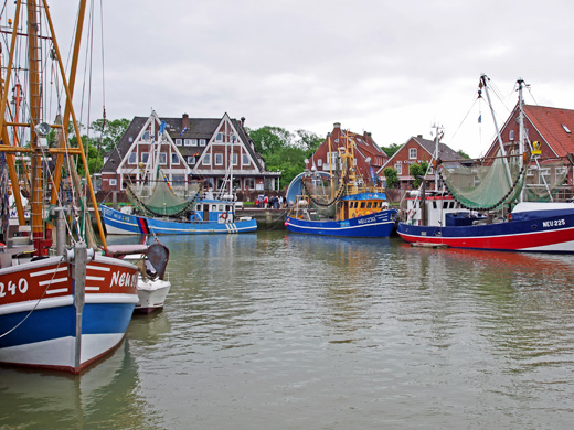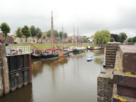 Quer durch das Wangerland gelangte die Gruppe zum touristisch erschlossenen Ort Carolinensiel. Besonders eindrucksvoll ist hier der originalgetreu rekonstruierte Hafen, in dem zahlreiche Plattbodenschiffe ankern.