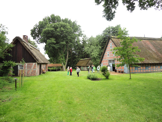 Am Nachmittag ging es mit dem Bus zum Technologie-Park der 1971 gegründeten Campus-Universität Bremen, deren verschiedene Fachbereichsanlagen vom Bus aus betrachtet wurden. Zu sehen war auch der 110 m hohe, einem Bleistift ähnelnder Fallturm, ein Zentrum für angewandte Raumfahrttechnologie und Mikrogravitation, und das walförmige Gebäude der interaktiven Wissenschaftsausstellung, das Science Center des Universums Bremen. Nächstes Ziel war das Teufelsmoor, dessen Erschließung dem Kolonisten Johann Christof Findorff zu verdanken ist, der die Methoden entwickelte, die den Durchbruch schafften. 1781 begann die Besiedlung des Gnarrenburger Moors. Durch Lilienthal und Worpswede hindurch erreichten die Reiseteilnehmer den „Historischen Moorhof Augustendorf“, ein 1989 ins Leben gerufene Museum, dessen Besichtigung kurzfristig ins Programm aufgenommen wurde. Hier wird versucht, ein Kulturdenkmal in natürlicher Lage zu bewahren und den Besuchern das Wohnen und Arbeiten der Moorkolonisten im 19./20. Jh. näher zu bringen. Im Rahmen einer einstündigen Führung stellten die Herren Gieschen und Dammann die Hofanlage vor.